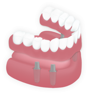Im Ausnahmefall können auch 4 Implantate im Oberkiefer und 2 Implantate zur Fixierung im Unterkiefer genutzt werden. Für Brücken auf Implantaten gelten die gleichen Regeln wie auf natürlichen Zähnen.