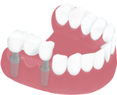 Wenn ein oder mehrere Zähne in einer Zahnreihe fehlen, wird mit Hilfe von einem oder mehreren Implantaten die Zahnlücke geschlossen. Der Vorteil liegt darin die Nachbarzähne nicht beschleifen zu müssen. Weiterhin bleibt der Kieferkammknochen durch die Implantate erhalten.