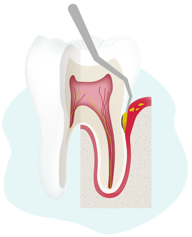 Bei der geschlossenen Behandlung werden bakterielle Beläge, Zahnstein und Ablagerungen oberhalb und vor allem unterhalb des Zahnfleischrandes entfernt und die Wurzel- und Zahnhalsoberflächen geglättet. Hierzu werden feine Handinstrumenten, bzw. Ultraschall- oder Schallinstrumente verwendet.