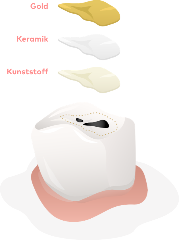 Die Einlagefüllung – Keramik-Inlay, CEREC-Inlay, Gold-Inlay oder bei größeren Defekten eine Teilkrone.