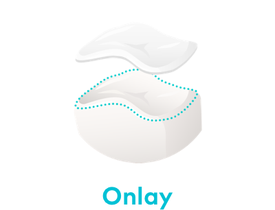 Je nach Lage und Ausdehnung der Einlagefüllung über die Zahnhöcker hinaus spricht man auch von Onlay oder Overlay. Ein Inlay bzw. Onlay kommt immer dann zum Einsatz, wenn nach einer erfolgreichen Kariesbehandlung noch genügend Zahnsubstanz vorhanden ist, so dass der gefüllte Zahn anschließend dem anfallenden Kaudruck standhalten kann.
