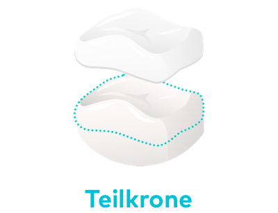 Teilkronen, auch Overlays genannt, werden im Front- und Seitenzahnbereich eingesetzt. In der Abgrenzung zum Onlay spricht man dann von einer Teilkrone, wenn sich der zu ersetzende Seitenanteil bis zum Zahnfleischrand erstreckt.