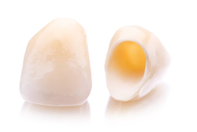 Bei aussenliegenden, kleineren Defekten ist eine Versorgung mit Keramikverblendschalen (Veneer) zu empfehlen. Da hierbei nur die Vorderseite des Zahnes beschliffen wird, sind Veneers eine deutlich zahnschonendere Variante.